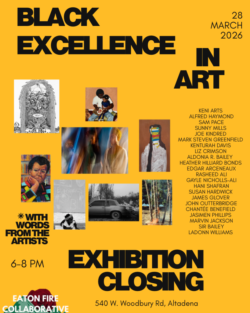 Altadena Photographers in the Black Excellence Art Show: Keni Arts, Alfred Haymond, Sam Pace, Sunny Mills, Joe Kindred, Mark Steven Greenfield, Kenturah Davis, Liz Crimson, Aldonia R. Bailey, Heather Hilliard Bonds, Edgar Arceneaux, Rasheed Ali, Gayle Nicholls-Ali, Hani Shafran, Susan Hardwick, James Glover, John Outterbridge, Chantée Benefield, Jasimen Phillips, Marvin Jackson, Sir Bailey, LaDonn Williams